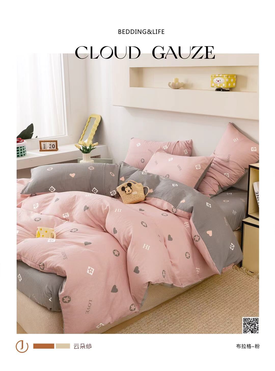 灰底粉五角星love