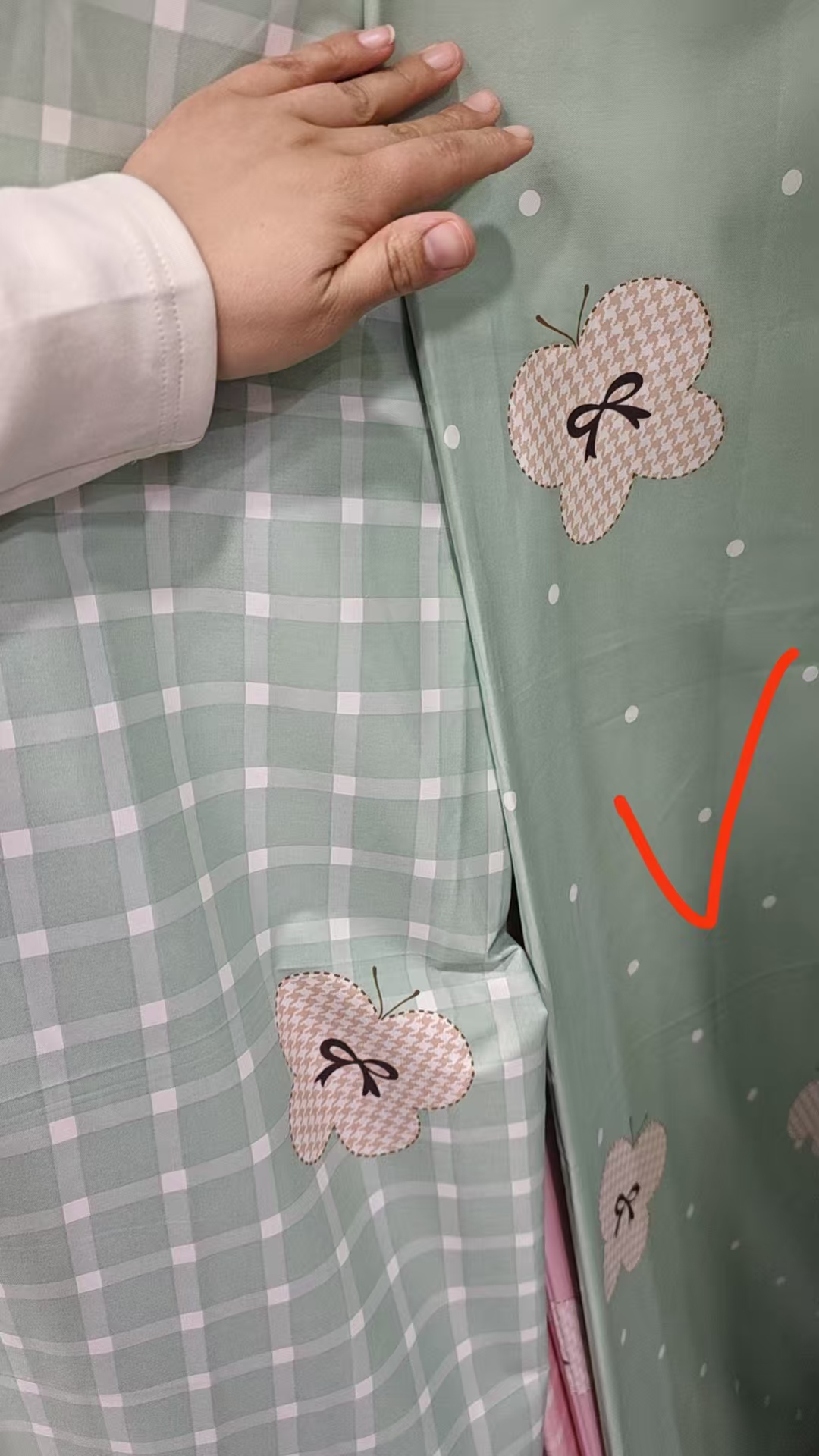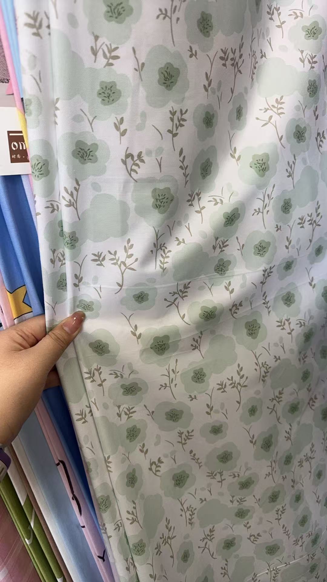 粗布绿色小花格